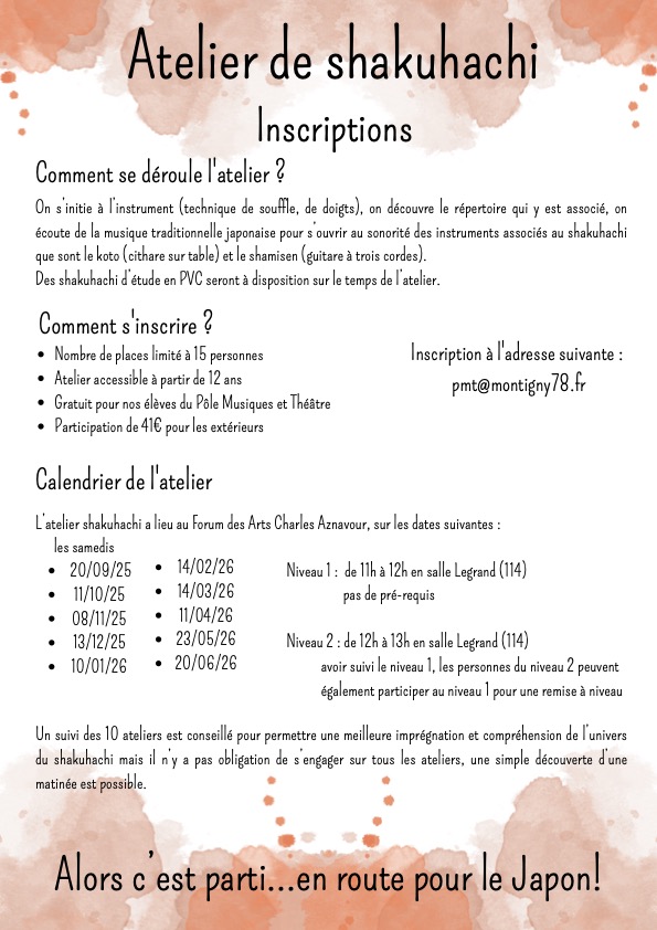 My next shakuhachi workshops at the Pôle Musique et Théâtre in Montigny-le-Bretonneux (Yvelines, France) for 2025-2026.
